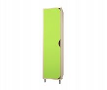 Шкаф для одежды детский одно секционный предназначен для раздевалок дошкольных учреждений. Изготовлен из ЛДСП 16 мм ,все торцы обработаны кромкой ПВХ . Внутри оборудован полочкой для верхних головных уборов, двумя крючками для одежды. Стоит на закрепленных регулируемых хромированных опорах.Кромка фасада и корпус шкафа исполняется в цвете молочный дуб. Дверь шкафа имеет выемку для руки, что позволяет легко открывать дверь ребенку и исключает возможность травмироваться ручкой. Вся продукция сертифицирована.