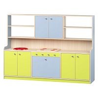 Прямая компактная кухня для детей дошкольного возраста. Во время игры дети приучаются убирать на кухне, готовить. У малышей развивается воображение и социальные навыки.